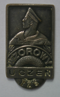 Była jednak odznaka, której posiadanie okupić trzeba było odpowiednią średnią ocen a nie cierpliwością w posługiwaniu się pilnikiem i papierem ściernym. Mówię o Odznace "Wzorowego Ucznia TŻŚ" - zaprojektowanej ponoć przez tego samego cytowanego wyżej Romana Radziałowskiego. Przyznawana była po każdej klasie i można było być wyróżnionym wielokrotnie. O ilości przyznanych laurów informował kolor podkładki pod odznaką: bez podkładki - pierwszy raz, podkładka niebieska - drugi raz, podkładka zielona - trzeci raz, podkładka czerwona - czwarty (maksymalnie) raz.Kiedy opuściliśmy szkołę pozostały nam na pamiątkę niektóre elementy munduru i odznaki. Każdy z nas zapewne z pietyzmem przechowywał je przez czas dłuższy lub krótszy. Niektórzy je posiadają do dziś - inni z różnych powodów już nie. Organizowano jednak zjazdy absolwentów i z tej okazji także pojawiały się okolicznościowe odznaki. Niestety - nie zachowały się w moich zbiorach te z okazji 30-lecia szkoły. Był to jedyny zjazd, w którym "w pełni" uczestniczyłem. Potem byłem jeszcze na 40-leciu szkoły jako kapitan "Młodej Gwardii", ale był to raczej "dziwny" czas w okresie stanu wojennego. Później już nie dane mi było uczestniczyć w żadnym "oficjalnym". Wziąłem udział w "zlotach" w Dusznikach i ostatnim: 21.06.2009 we Wrocławiu. Znaczki z tych ostatnich prezentuję poniżej.